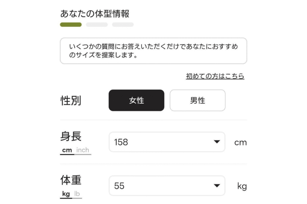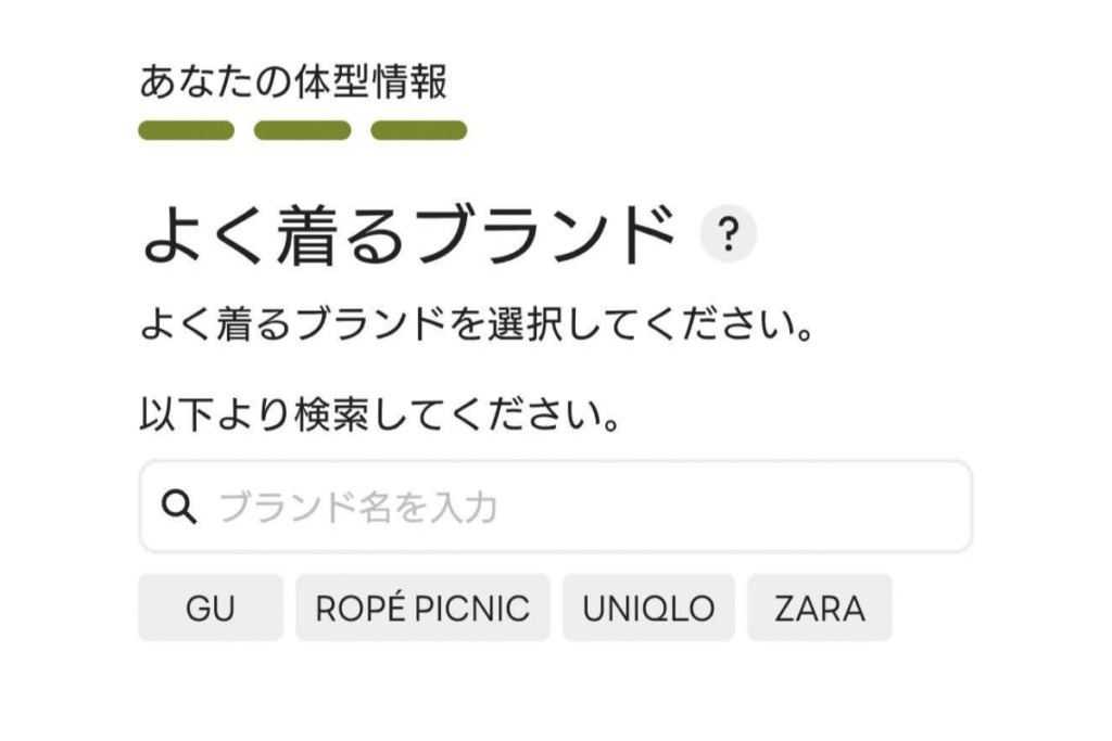 身長や体重、年齢、よく着るブランドを入力すると、あなたの「おすすめサイズ」がわかります。
