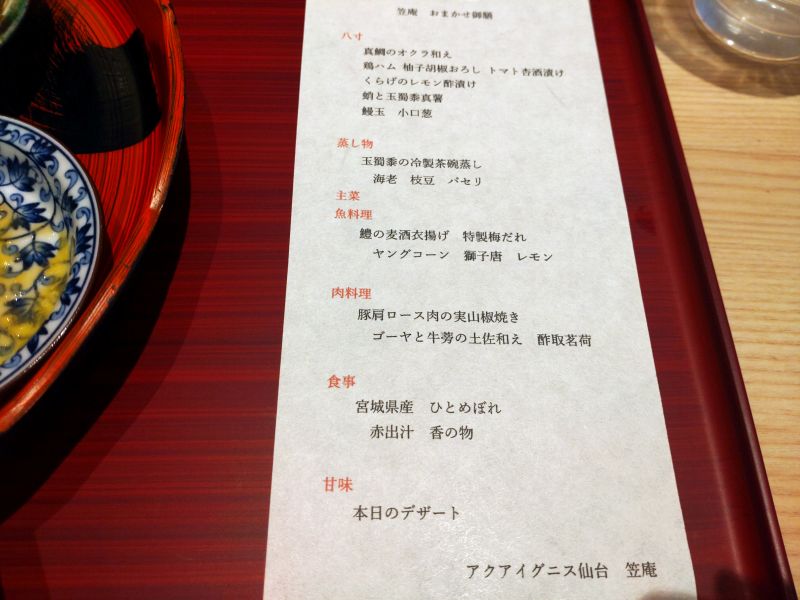 先日、アクアイグニス仙台内にある「笠庵」に家族で行って、おまかせ御膳とお子様御膳を堪能したので、ご紹介します。