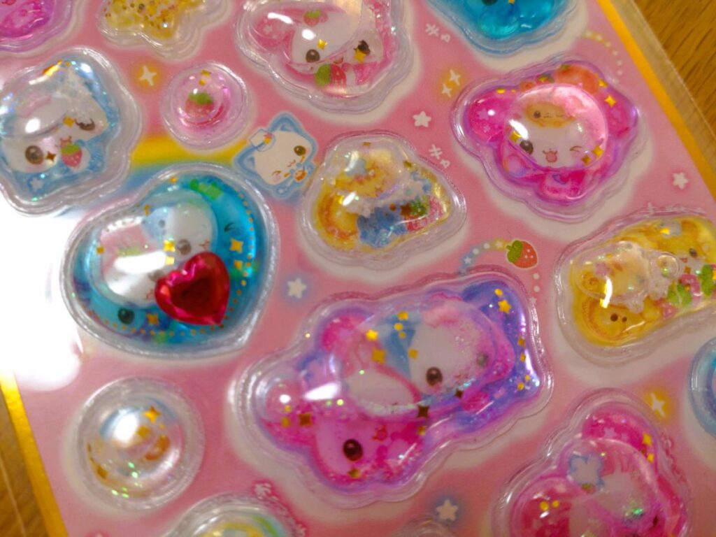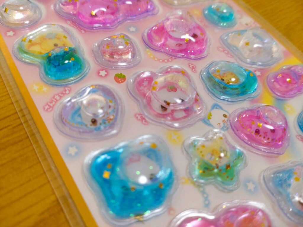 「ウォーターインシール」とは、ぷっくりとしたシールの中に液体やキラキラしたラメが入ったシールです。
